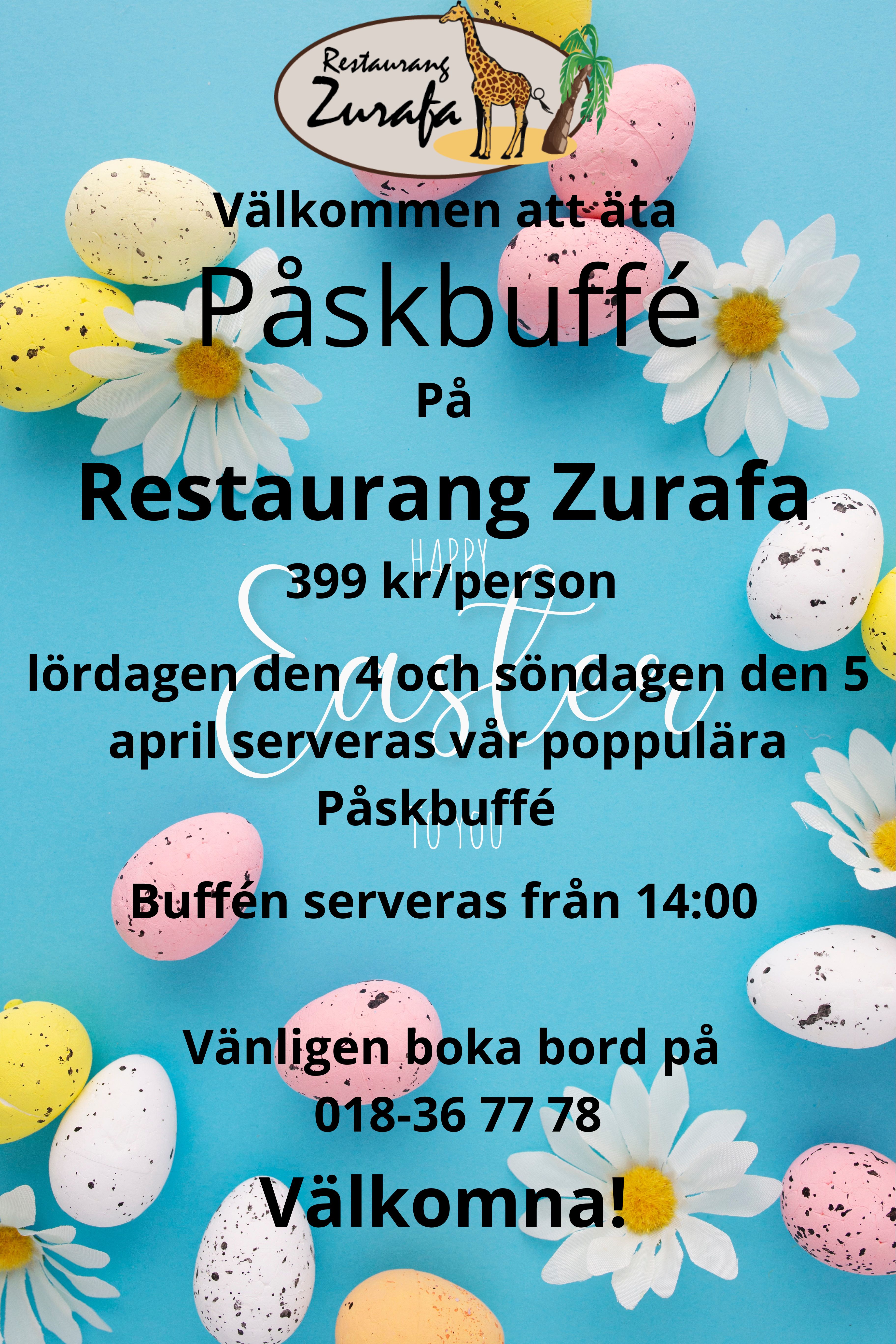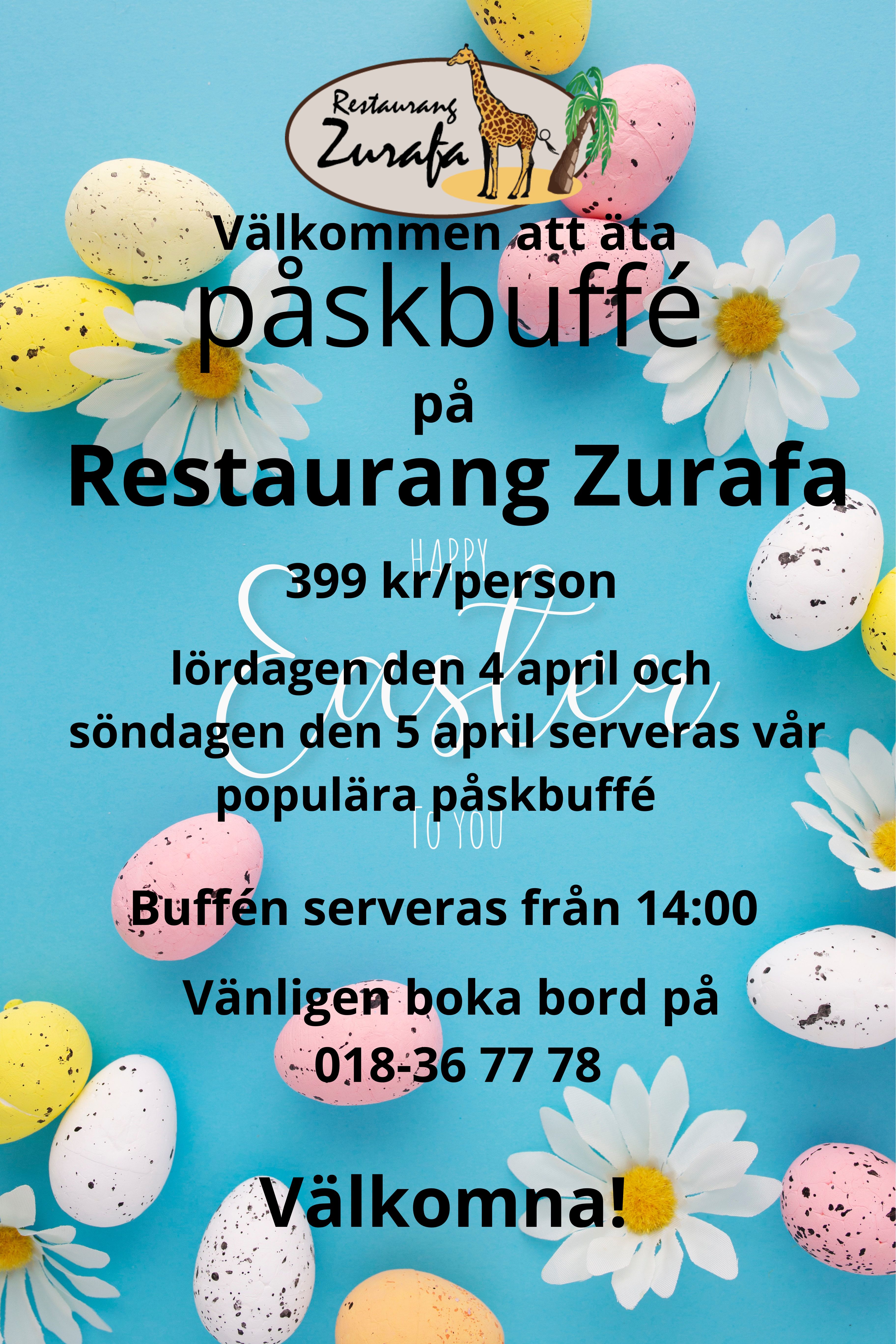 Så kom och besök oss för en matupplevelse utöver det vanliga. Luta dig tillbaka, njut av vår fantastiska mat, och se dina barn skratta och leka på vår lekplats. Vi ser fram emot att välkomna hela din familj och göra er vistelse hos oss oförglömlig. Välkommen till restaurang Zurafa utanför Uppsala!